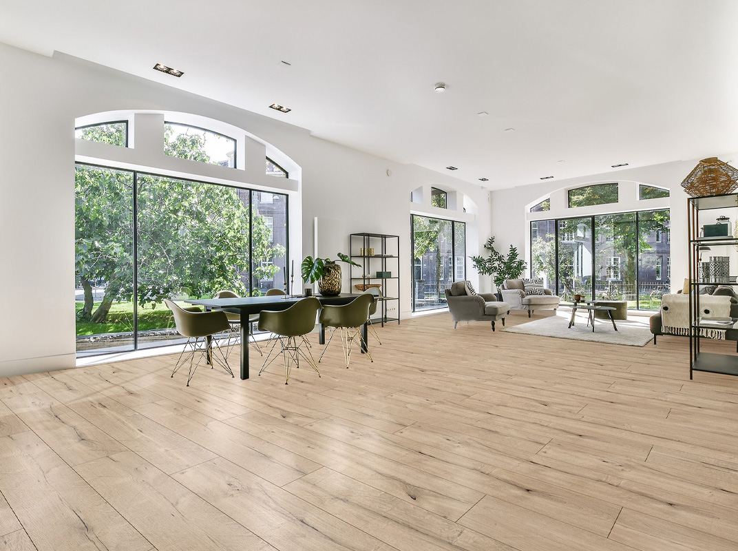 - Водостійкість: 100% захист від вологи робить підлогу ідеальною для вологих приміщень.
